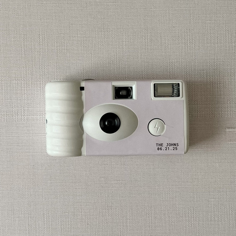 - White plastic disposable camera with custom sticker wrap